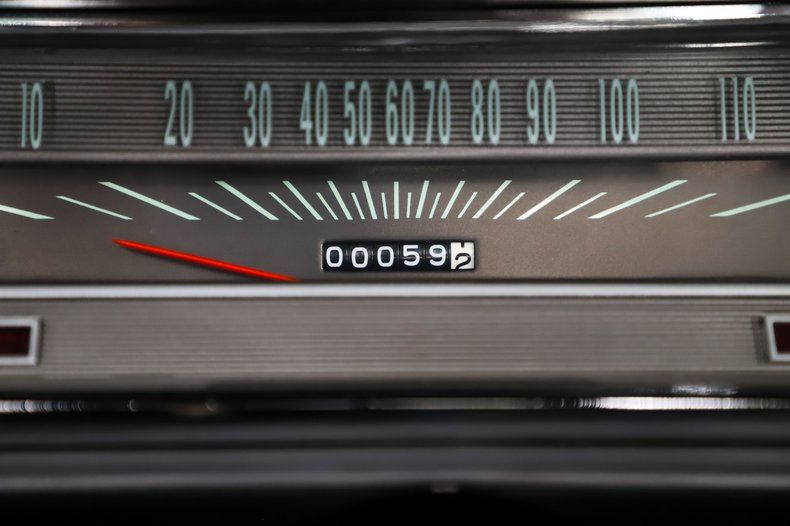 INTERIOR: It's been completely restored back to factory condition! In front of me is a pristine dash with all new factory gauges, blinker tachometer, heater control panel, dash pad, all the chrome trim and even the steering wheel has been replaced. Down on the floor has fresh carpet and in between the bucket seats is a factory console with a working clock and correct 4-speed shifter. The seats have been reupholstered, the door panels, armrests and window cranks have all been replaced. Even the mirror and the visors were replaced. It has a new glovebox liner and the glovebox pouch with the owner's manual. The wiring harness was replaced and the interior lights work. Complete with seatbelts front and back.