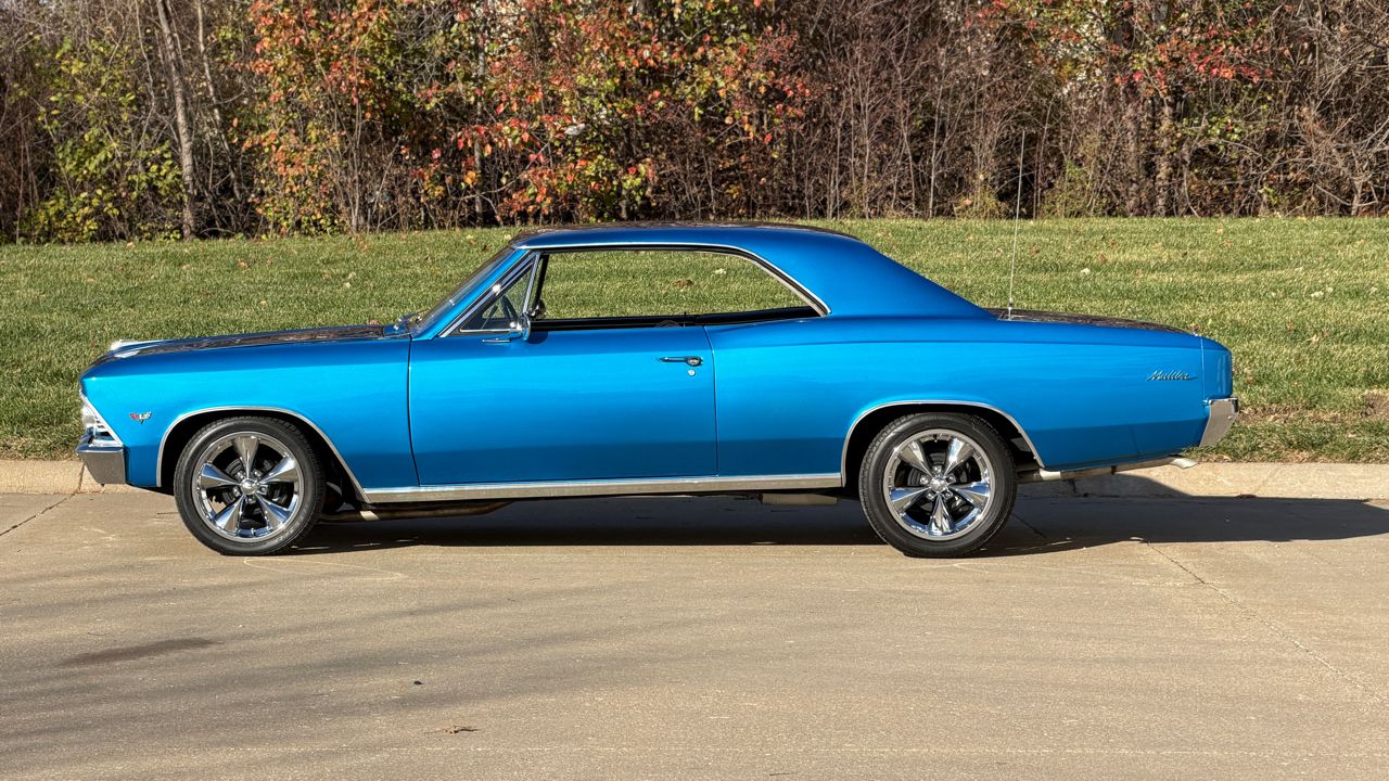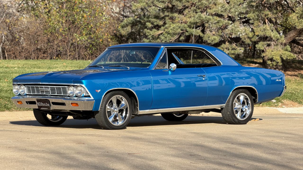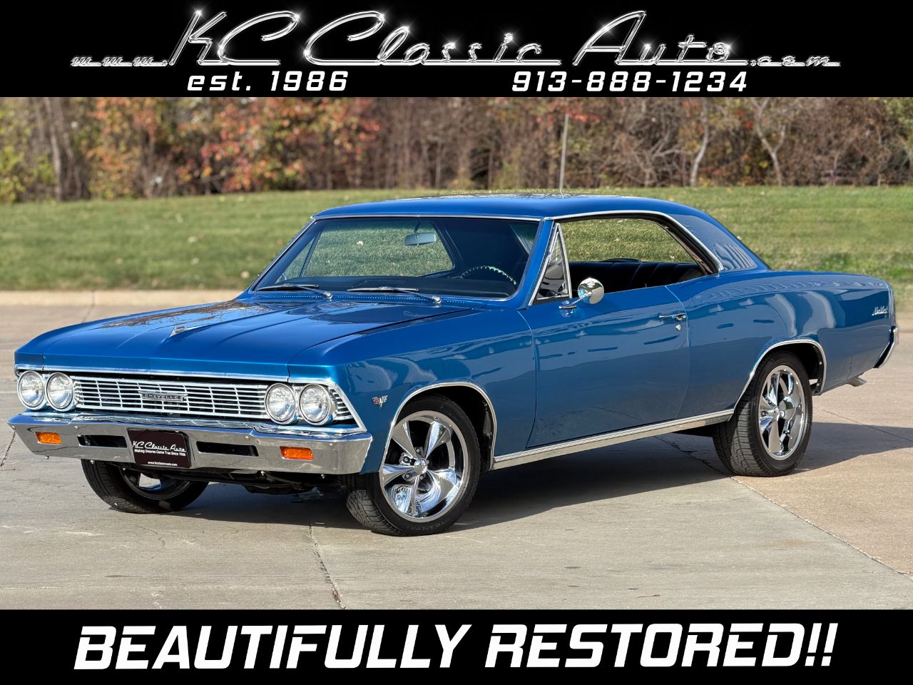 KC Classic Auto is proud to present this AWESOME 1966 Chevelle Malibu, A.K.A. Margaret!Beautifully restored and refinished in its original Marina Blue with Black interior. The body and paint are in great shape.Believed to be original rebuilt 283ci V8 with an Edelbrock carburetor and large aluminum radiator, mated to a Powerglide automatic transmission.It also has an aftermarket under dash Air Conditioning unit, power steering, power brakes, variable speed windshield wipers, and a JVC head unit with Bluetooth/CD player, etc.Sitting on a set of chrome 17 Boyd Coddington wheels with Sumitomo tires. Great driver! Visit KC Classic Auto online at kcclassicauto.com to see more pictures of this vehicle or call us at 913-888-1234.