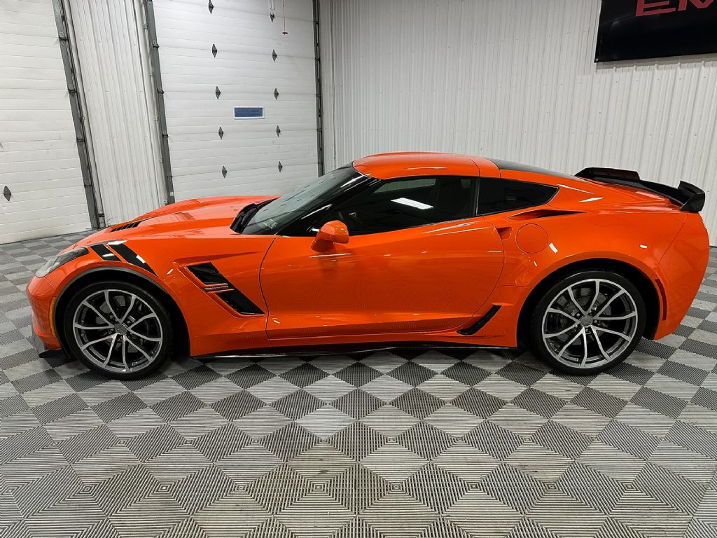 This Grand Sport also wears the machined-face lightweight aluminum wheels and is finished in the limited-production Sebring Orange Tintcoat, a standout color for 2018. It is further distinguished by the Grand Sport Heritage Package, which adds carbon-flash fender hash marks, interior aluminum hash marks, Grand Sport logo floor mats, a carbon-flash rear license plate holder, and the carbon-flash badge package.