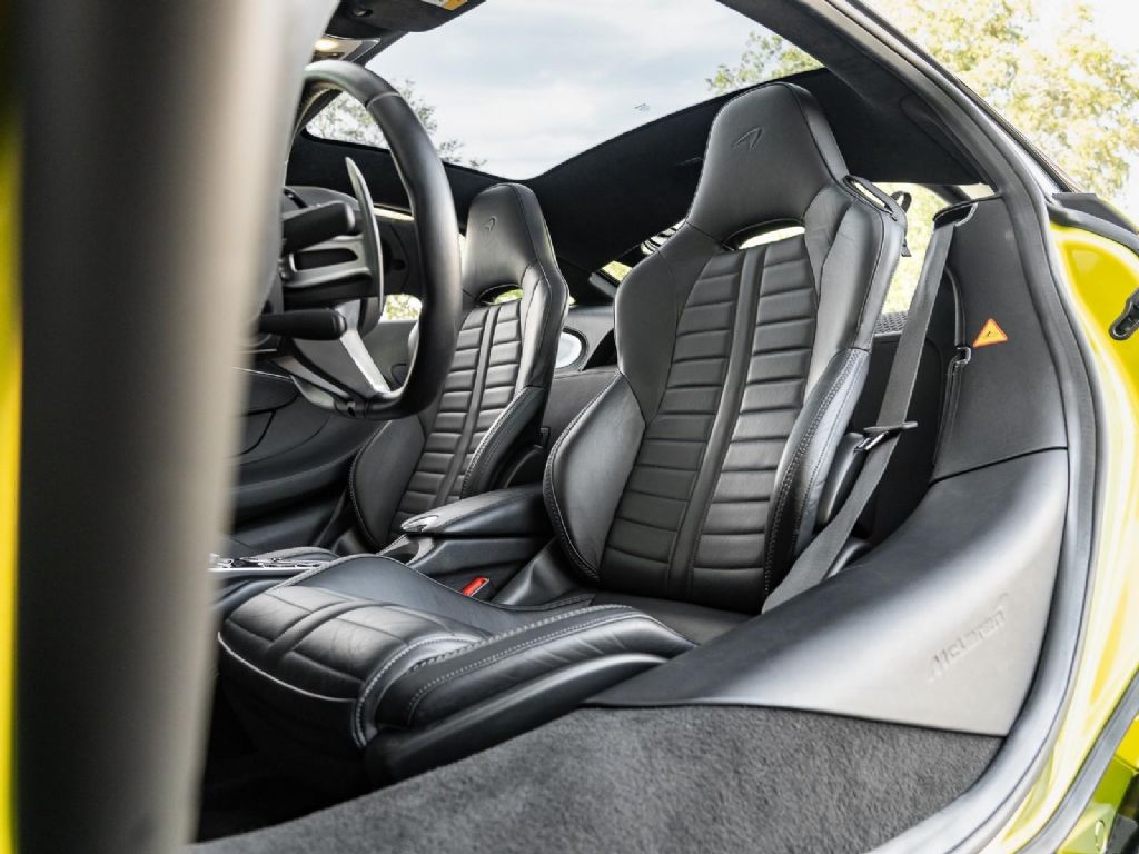 This 2025 McLaren GTS TechLux in Flux Green over a black interior with only 4,366 miles is a refined evolution of McLaren’s grand touring formula, powered by a 4.0 liter twin turbo V8 producing 626 hp and 465 lb-ft of torque, paired with a lightning fast 7 speed dual clutch transmission driving the rear wheels. With a curb weight of 3,300 lbs, the GTS accelerates from 0 to 60 mph in about 3.1 seconds and reaches a top speed of 203 mph, while offering improved ride comfort, sound insulation, and expanded luggage capacity compared to traditional McLaren supercars. The TechLux specification emphasizes luxury and usability, featuring premium leather upholstery, enhanced infotainment, advanced driver assistance systems, adaptive suspension, and a more compliant chassis setup that makes long distance driving effortless without sacrificing performance. With its rare color, low mileage, and balance of supercar speed and everyday refinement, this GTS stands out as one of the most versatile and elegant McLarens available.