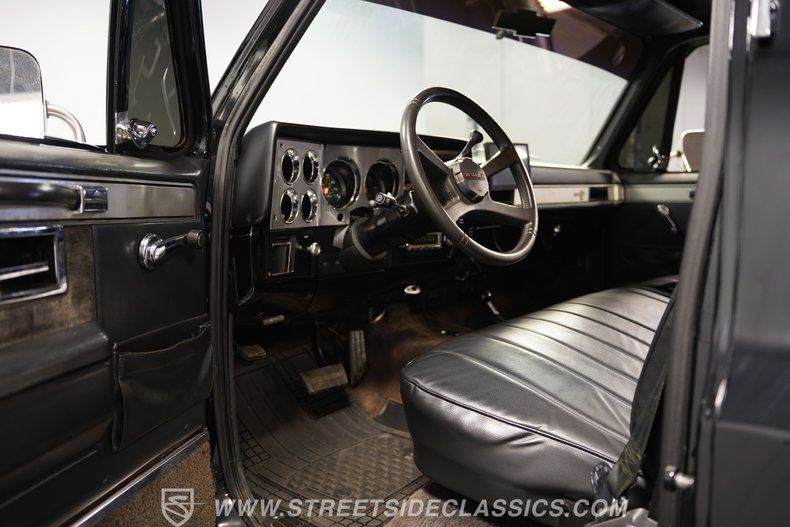 Under the hood, this K10 boasts a healthy 400 V8 engine paired with a 4-speed automatic transmission, delivering a smooth and powerful drive. Performance is enhanced by a Holley single 4-barrel carburetor, an Edelbrock intake, long tube headers, and FlowMaster mufflers, producing a distinctive, throaty exhaust note. The 4x4 drivetrain features power front disc and rear drum brakes, power steering, and a 10-bolt rear axle, all supported by Rough Country shocks and Mickey Thompson bead lock style wheels with oversized off-road tires. This truck is ready to tackle both city streets and off-road trails with confidence.