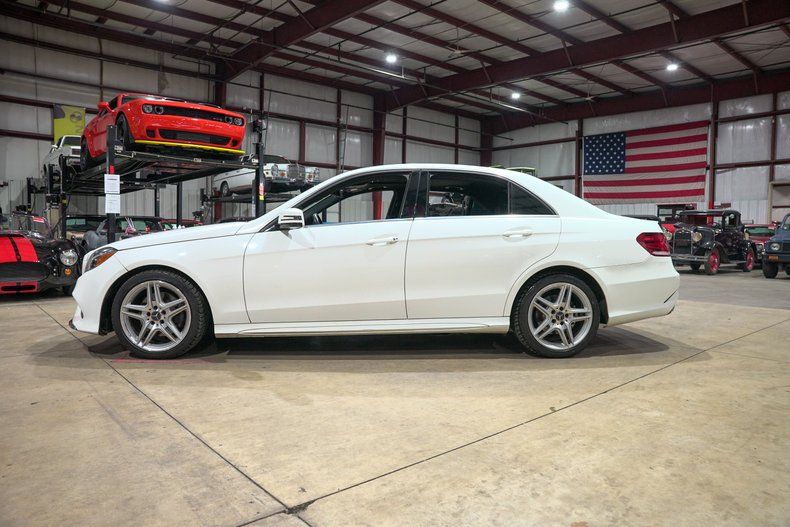 GR Auto Gallery is excited to present this 2014 Mercedes Benz E 350 Sport 4MATIC Sedan finished in classic Polar White over a black leather interior. The E Class strikes an ideal balance between understated luxury and athletic presence, and this example is enhanced by subtle sport touches like the rear deck spoiler and 18 inch AMG twin five spoke wheels that give it a more planted, modern stance. The clean exterior lines paired with comfort suspension make this a sedan that looks equally at home pulling into a corporate parking lot or cruising down the highway.