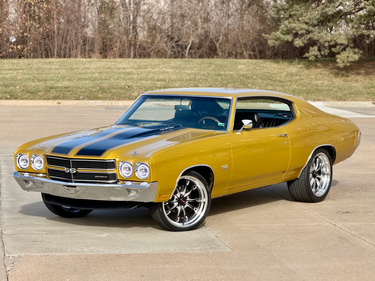 KC Classic Auto is proud to present this GORGEOUS 1970 Chevelle SS, A.K.A. Gilda!Over $25,000 in receipts for work done over the past 3 years, a STEAL at this price!! Comes with the original owners manual.Refinished in a stunning Gold metallic with Black stripes. Believed to have been painted around 20 years ago, it is in great shape for its age! According to the cowl tag, it was a special-order paint car from the factory, so the original color is unknown.Restored Black vinyl interior with bucket seats and a console! The door panels, carpet and seat foam were replaced less than 5 years ago. The console/horseshoe shifter, instrument bezel and the rest of the interior is in excellent condition as well. It has the correct factory gauges with tach in dash, as well as Autometer Cobalt oil pressure and water temperature gauges in an A-pilar gauge pod. Tilt steering column with a walnut deluxe steering wheel. Kenwood CD player hidden in the glove box, as well as Kenwood 6x9 speakers in back.Powered by a BUILT 454ci big block V8! In December 2023, the engine was professionally rebuilt by a local performance shop and only has around 1,000 miles on it since. It has forged internals, h-beam rods, LS-6 big port heads, Edelbrock Victor Jr intake manifold (powder coated to match body), a Holley 850cfm carburetor, and MORE! Power steering, power brakes (front slotted and cross drilled discs), large aluminum radiator with dual electric fans. It also has a black billet CVF Racing serpentine pulley system, which includes a black high output alternator, black power steering reservoir, and black billet pullies. A few months ago, MSD ignition was installed, including digital 6AL ignition box with rev control, Blaster 2 ignition coil, Pro-Billet distributor, and MSD wires.Power is sent to the ground with a rebuilt TH400 automatic transmission, and a date correct 12-bolt rear end thats been upgraded with a positraction differential and 3.73 gears. Originally an F41 suspension car (included sway bars and boxed control arms), it now has upgraded UMI sway bars and control arms, new end links, Bilstein shocks in front, and air shocks in back.This Chevelle sounds MEAN with its ceramic coated Hooker long tube headers and 3 Flowmaster exhaust. It also has custom color changing halo LED headlights, a functional cowl hood, and a custom carpeted trunk finishing kit with hidden storage compartment.Earlier this year, around $4,000 was spent on a set of new 20 Weld Belmont wheels with Nitto 235/35/20 tires on front and 305/35/20 on back.A lot of time and money was spent creating this beautifully restored Chevelle, dont miss this opportunity! Visit KC Classic Auto online at kcclassicauto.com to see more pictures of this vehicle or call us at 913-888-1234.