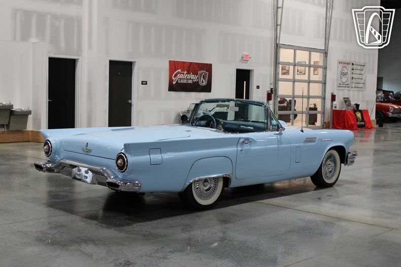 Introducing a timeless classic that combines elegance with performance: the 1957 Ford Thunderbird. This iconic vehicle is a true representation of 1950s American automotive design, featuring a striking blue exterior that beautifully complements its sleek lines and chrome accents. Under the hood, you'll find a robust V8 engine paired with an automatic transmission, offering a driving experience that's both powerful and smooth, great for leisurely drives or cruising the open road.