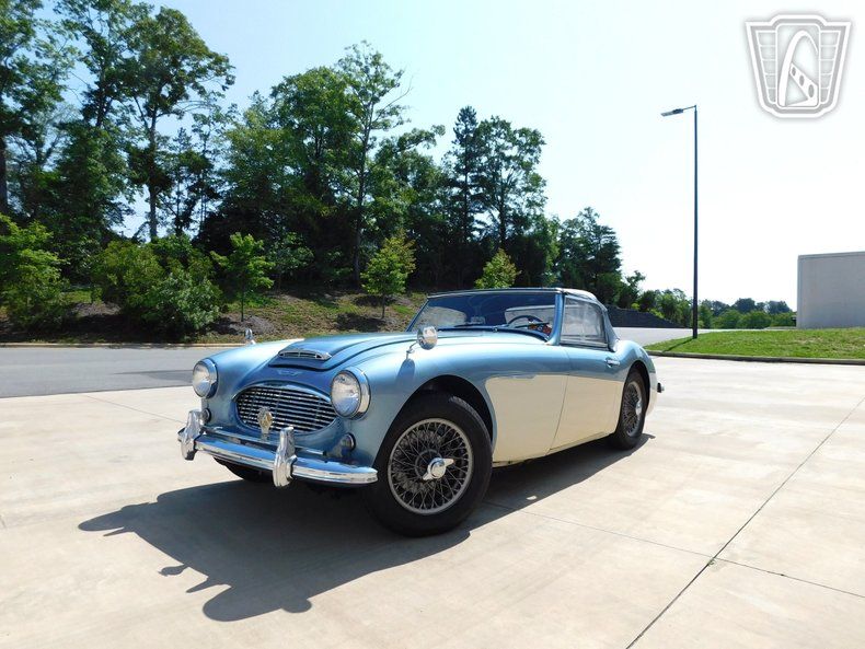 Gateway Classic Cars of Charlotte is proudly to digitally present, a classic icon of British motoring heritage, the 1961 Austin-Healey 3000 BT7, showcasing a striking blue and white exterior that captures attention and admiration on every journey. This automobile is a quintessential example of timeless design and engineering, embodying the spirit of the golden era of roadsters. The sophisticated exterior color combination is complemented by a sleek blue interior, creating a harmonious blend of style and elegance. Under the hood, this Austin-Healey is powered by a robust 2.9L inline-six engine, paired with a 4-speed overdrive manual transmission. This powertrain configuration offers drivers a dynamic and engaging driving experience, reminiscent of the open roads and spirited drives of the 1960s. The manual convertible top provides the flexibility to enjoy the sunshine and fresh air with ease, enhancing the overall driving experience. Inside, the blue vinyl interior presents a classic yet durable finish, maintaining the authentic look and feel that enthusiasts appreciate. The car is equipped with wire wheels, adding a touch of classic sophistication while contributing to the vehicle's distinctive and appealing profile. Each of these elements works in concert to provide an authentic and enjoyable driving experience that recalls the charm and thrill of a bygone era. This 1961 Austin-Healey 3000 BT7 stands as a testament to the enduring allure of vintage British sports cars, offering a unique opportunity to own a piece of automotive history. Whether for leisurely drives or as a prized addition to a collection, this vehicle promises a timeless connection to the elegance and excitement of classic motoring.