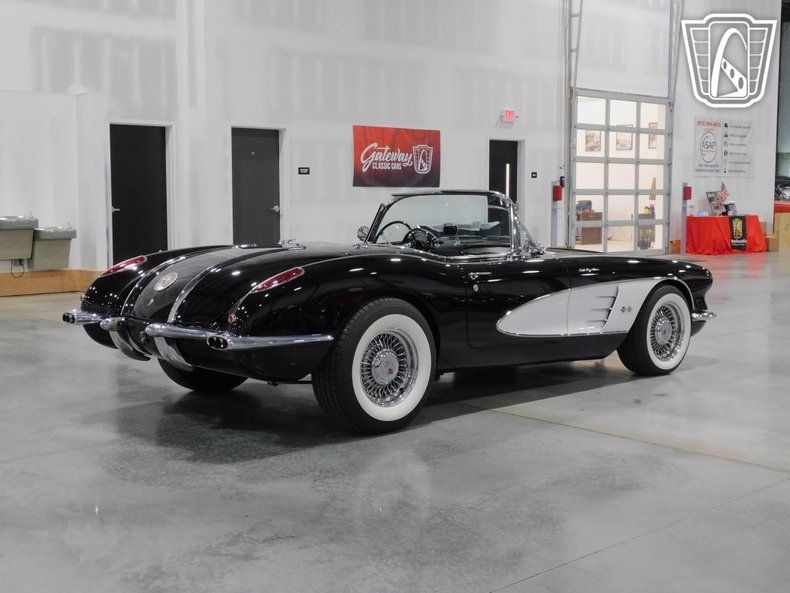 Gateway Classic Cars of Philadelphia proudly presents the 1958 Chevrolet Corvette. This Corvette stands out with its striking black and white exterior, a timeless color combination that captures the essence of vintage elegance and performance. The Corvette's sleek lines and distinctive curves are complemented by wide white walls and wire wheels, offering a nod to its storied past while ensuring a head-turning presence on any road.