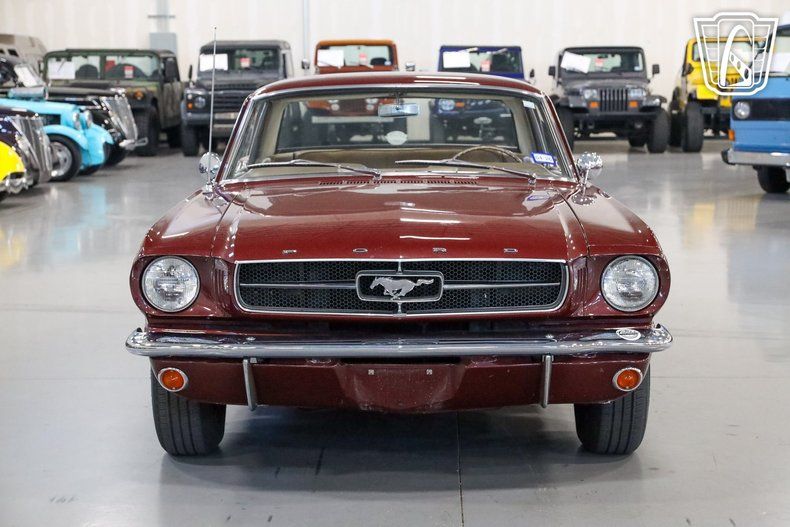 Gateway Classic Cars of San Antonio/Austin is excited to present this 1965 Ford Mustang. Finished in an elegant burgundy exterior with a palomino interior, this Mustang showcases the clean lines and timeless styling that helped define a generation of American automobiles. Power comes from a 170 cubic inch inline six-cylinder engine paired with an automatic transmission, offering a smooth and consistent driving experience that captures the charm of early Mustangs. Inside, the palomino interior provides a warm and classic atmosphere. The cabin features simple, driver-focused controls and an AM/FM radio for added enjoyment on the road. Every detail reflects the era's purposeful design philosophy, blending comfort and simplicity in a way that remains appealing today. This Mustang comes equipped with power steering and power brakes, delivering added ease and control behind the wheel. The braking system has been upgraded with Wilwood disc brakes on both the front and rear, providing enhanced stopping performance. It rides on Scott Drake Legendary wheels wrapped in Nexen white wall tires, giving the car a refined and period-correct look with a touch of modern reliability. The 1965 Ford Mustang remains one of the most recognizable classics in automotive history, and this example captures the spirit of the original pony car. With its stylish burgundy finish, palomino interior, and tasteful mechanical upgrades, it stands as a timeless representation of Ford's enduring legacy.