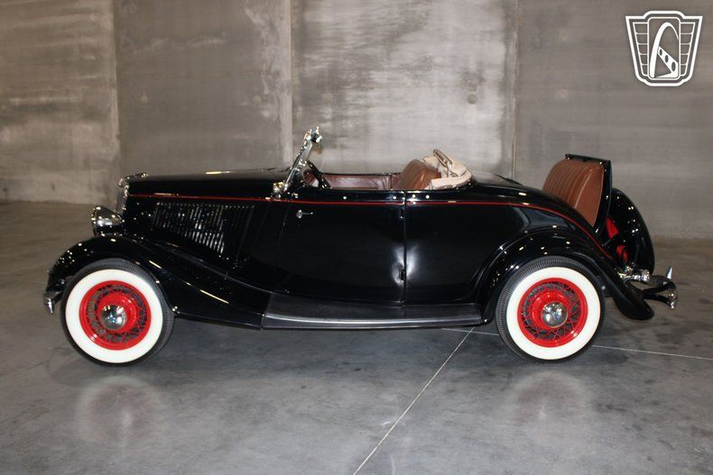 In summary, the 1934 Ford Roadster Model 40 Deluxe is a stunning representation of classic automotive design and engineering. With its black exterior, brown vinyl interior, and iconic Flathead V8 engine, this roadster offers a driving experience that is both nostalgic and exhilarating. Whether displayed at a car show or enjoyed on a leisurely drive, this vehicle is sure to be cherished by enthusiasts and collectors alike.