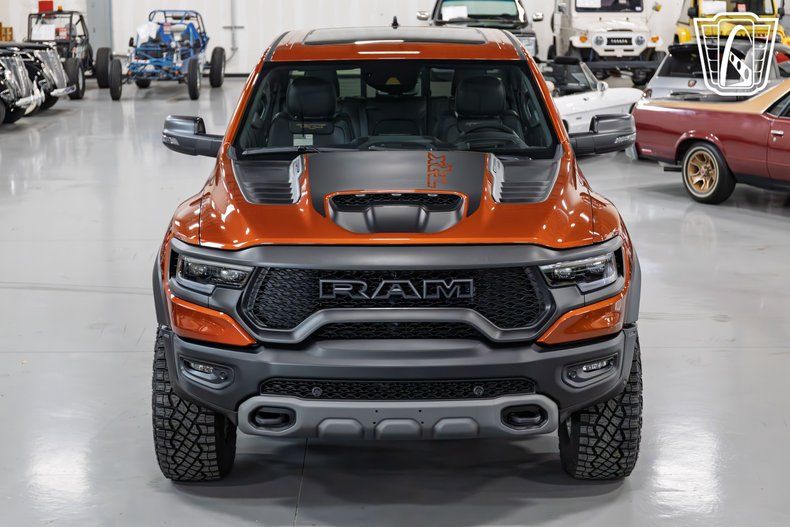 Gateway Classic Cars of San Antonio/Austin is excited to present this 2024 Ram TRX Final Edition. A Final Edition is offered exclusively for the 2024 model year, but only 4000 will be built. This TRX Final Edition is available in three exclusive colors: Delmonico Red, Night Edge Blue, and Harvest Sunrise that this one is finished in. Hiding between the TRX's bulging fenders and below its scooped hood is a supercharged Hemi 6.2-liter V-8. More popularly known as the Hellcat engine, this specific version produces 702 horsepower and 650 pound-feet of torque, which is sent to all four wheels through an eight-speed automatic transmission. The combination promises an exhilarating driving experience, whether you're navigating city streets or exploring off-road trails. Step inside to discover a carefully crafted interior with black leather-covered surfaces and a mix of microsuede and carbon-fiber accents. The cabin is equipped with a range of features designed to enhance your driving experience. Enjoy the convenience of digital rearview mirror, power sunroof a head-up display, and heated and ventilated front power seats with lumbar support, ensuring you remain comfortable on long journeys. Stay connected and entertained with the vertically mounted 12.0-inch touchscreen infotainment system. The unit boasts Apple CarPlay, Android Auto, built-in navigation, and SiriusXM satellite radio. The vehicle's advanced safety features, including anti-lock brakes, driver and passenger airbags, and seatbelts, provide peace of mind for you and your passengers. Traction control and performance tires work in harmony to deliver superior handling and stability, regardless of the driving conditions. This remarkable vehicle is not just about performance and luxury; it's about providing an unparalleled driving experience.