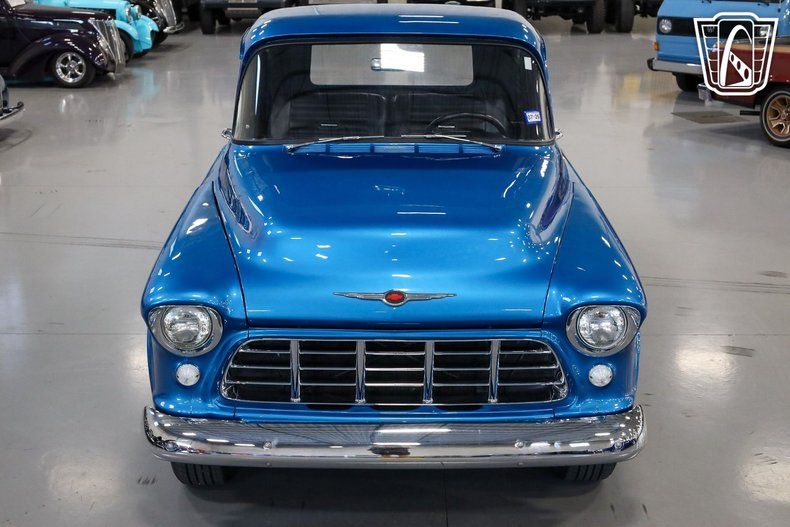 Gateway Classic Cars of San Antonio/Austin is proud to present this 1955 Chevrolet 3100 is a standout choice for enthusiasts and collectors alike. With its striking blue exterior, this iconic pickup truck captures the essence of mid-century American automotive design. The timeless appeal of its exterior is complemented by a sleek black interior, offering a stylish and comfortable driving experience. Under the hood, this Chevrolet 3100 is equipped with a new 350 CID V8 engine, delivering impressive power and performance. Paired with a new Turbo 350 automatic transmission, this truck offers a smooth and responsive driving experience, making it a joy to drive on both city streets and open highways. Inside, the truck features a practical and durable vinyl interior, providing a classic look with modern comfort. Custom wheels add a touch of individuality to this classic vehicle, while radial tires offer enhanced traction and stability, ensuring a confident drive. This 1955 Chevrolet 3100 is a remarkable blend of classic style and modern upgrades, making it a must-see for anyone interested in vintage trucks with contemporary performance enhancements. Whether you're a collector or simply appreciate the beauty of classic American trucks, this Chevrolet 3100 is sure to impress.