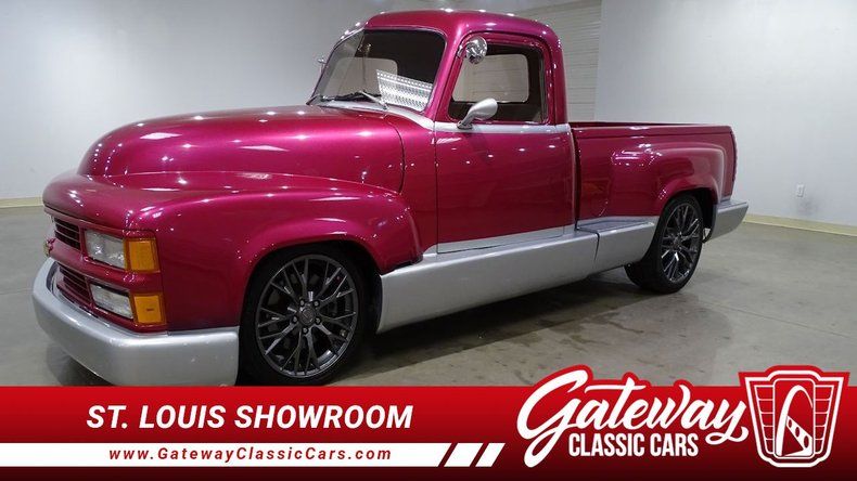 Gateway Classic Cars of St. Louis is proud to digitally present this 1947 Chevrolet Custom Truck stands out with its striking metallic pink exterior. This eye-catching color highlights the blending of modern and vintage lines and sets it apart as a one-of-a-kind vehicle for enthusiasts who appreciate both history and individuality. Complementing the exterior is a tasteful beige interior, creating a warm and inviting atmosphere that enhances the overall driving experience.
