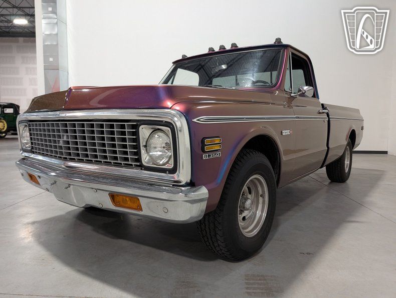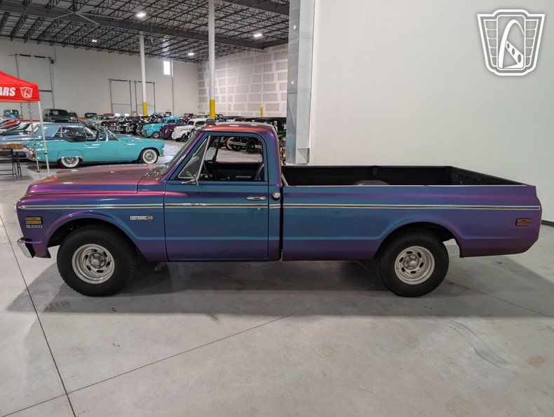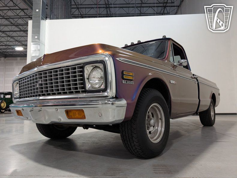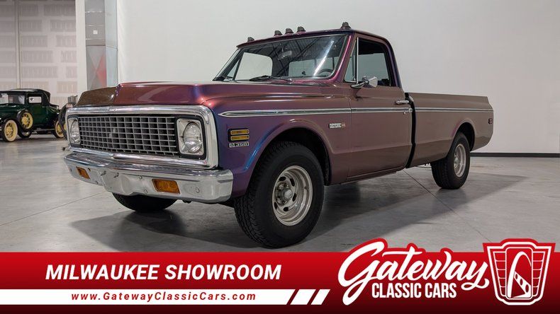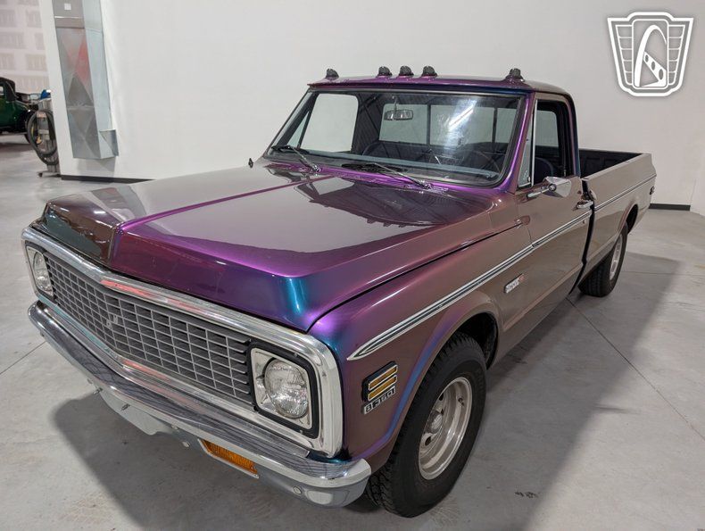 Gateway Classic Cars is proud to offer this classic blend of style and performance, the 1971 Chevrolet C/K Cheyenne is a timeless icon that stands out with its unique purple flip tone exterior. This striking color not only captures attention but also reflects the bold spirit of the era. Complementing its vibrant exterior, the truck features a sophisticated navy blue cloth interior, offering a comfortable and inviting cabin space for both driver and passengers.