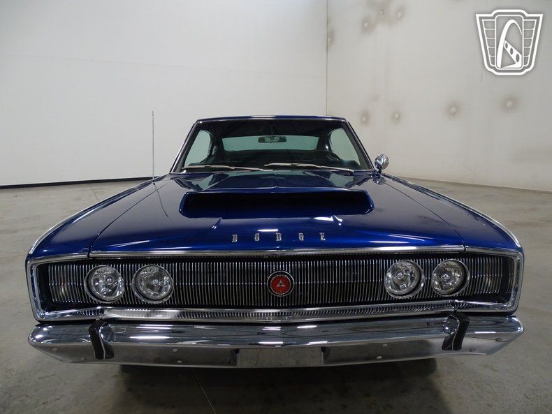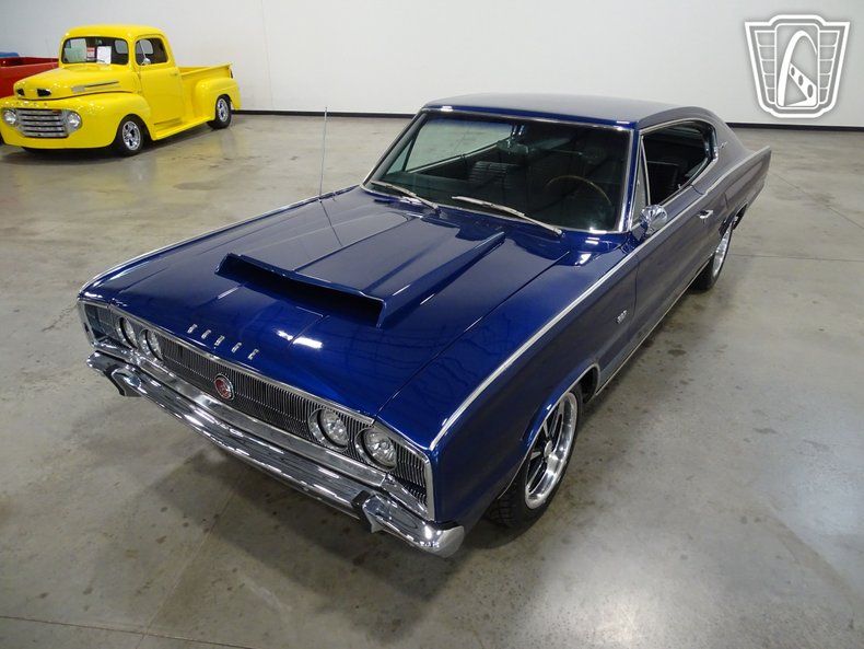 This 1966 Dodge Charger is painted in stunning electric blue with a beefy set of five-spoke alloy wheels. The unique black vinyl interior comes with a floor shifter, power windows, and a Sony AM/FM radio mounted in the glovebox. The interior was uniquely designed with four bucket seats and a center console that runs the length of the cockpit. Stressing the muscle car image, the Charger was only sold with four V-8 engine options. Distinguished by its fastback roofline, "electric shaver" front grille, and full width rear taillights this 1966 Dodge Charger is a head turner.