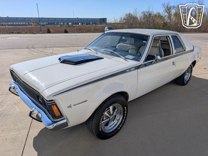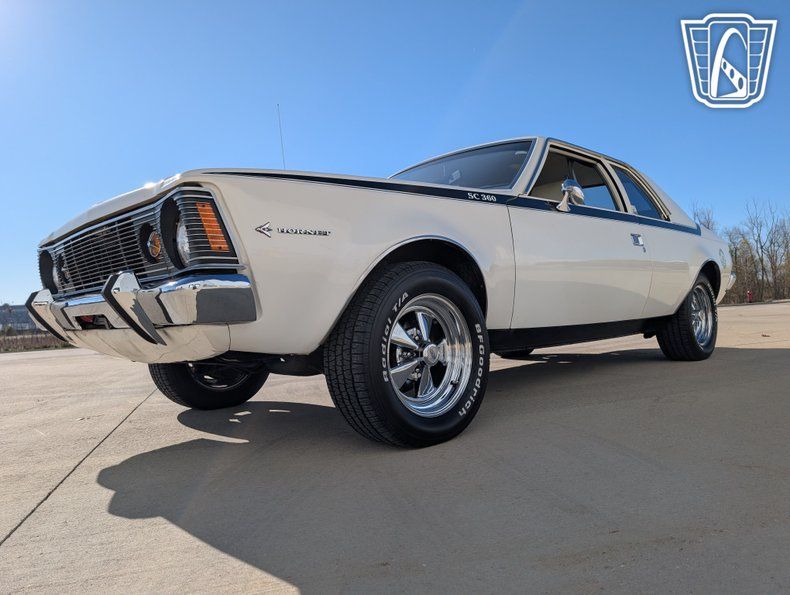 Safety and comfort are further enhanced with the inclusion of seatbelts and radial tires, providing peace of mind on the road. The vinyl interior not only adds to the vehicle's classic charm but also offers durability and ease of maintenance. This tribute to the AMC Hornet SC/360 is a wonderful blend of style, performance, and nostalgia, making it a standout choice for enthusiasts of classic American cars.