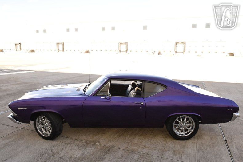 Gateway Classic Cars Houston Showroom is proud to present this radical 1969 Chevrolet Chevelle. The 1969 Chevrolet Chevelle stands as a defining model within one of Chevrolet's most iconic nameplates, and this example presents itself in a striking purple exterior that highlights the bold styling cues of the era. The 1969 model year occupied a unique place in Chevelle history, positioned between the major body redesign of 1968 and the equally significant redesign of 1970. The 1968 and 1969 Chevelles shared the same overall body architecture, characterized by a tapered front end, semi-fastback roofline, and clean, flowing contours. However, the 1969 models distinguished themselves with revised front and rear treatments, including a more pronounced grille, updated headlamp surrounds, and redesigned tail lamps. In contrast, the 1970 redesign introduced a more squared-off look, featuring a taller front fascia, dual headlights set into a more angular frame, and a stronger emphasis on muscular, blockier lines. This positions the 1969 Chevelle as the midpoint between the smoother, earlier curves and the sharper, more aggressive appearance that followed.