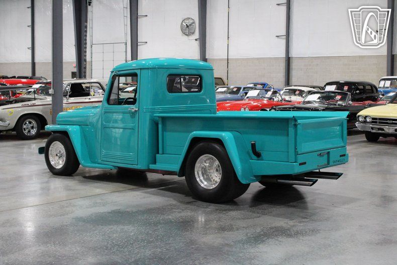 Gateway Classic Cars of Philadelphia proudly presents the 1947 Jeep Willys Pickup Pro Street. This iconic vehicle stands out with its striking turquoise exterior, a color that not only captures attention but also pays homage to the vibrant spirit of the late 1940s. Under the hood, this classic pickup is powered by a formidable 440 V8 engine, offering a robust performance that is complemented by the smooth operation of an automatic transmission. This combination provides an exhilarating driving experience that is both powerful and seamless.