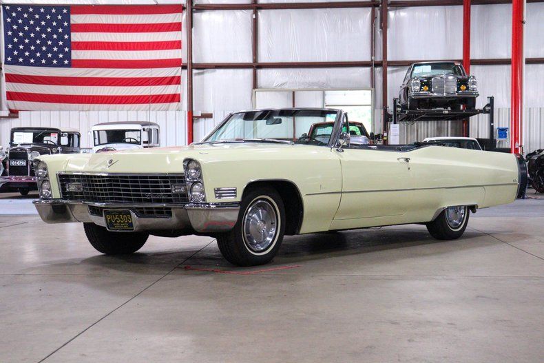 GR Auto Gallery is pleased to present this stunning 1967 Cadillac de Ville Convertible for your consideration. This classic beauty embodies the elegance and grandeur that Cadillac is renowned for, featuring a commanding presence that turns heads wherever it goes. With its iconic Persian Ivory exterior paint, this de Ville is a true testament to American automotive excellence.