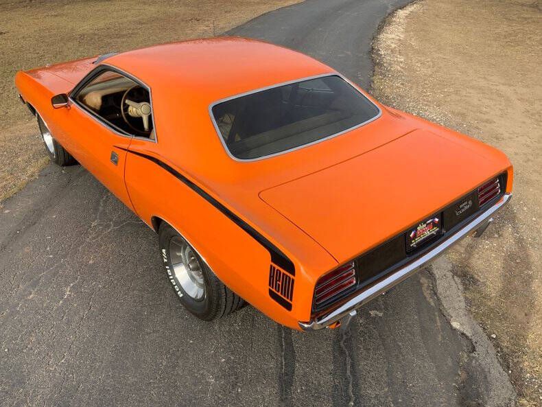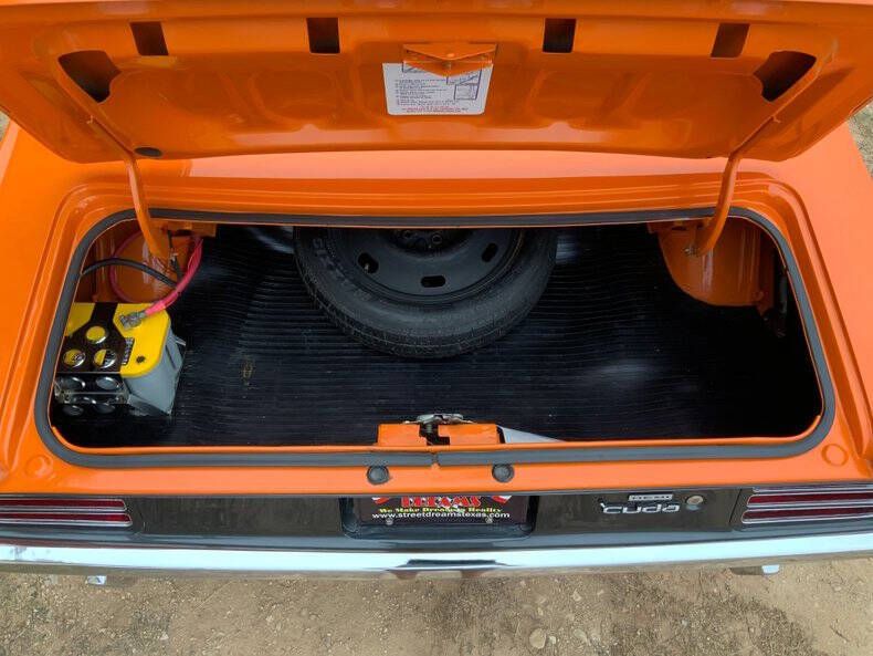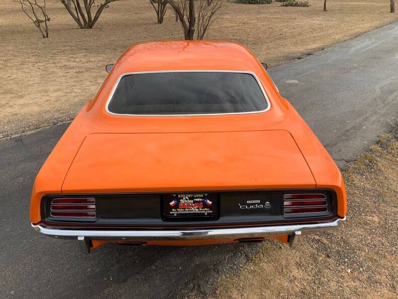 Welcome to Street Dreams as we celebrate our 27th year in the classic and muscle car business. O.K. Mopar fans, here's some more red meat for your Pentastar dining pleasure. The 1970 Plymouth Barracuda is among the most sought after muscle cars of all time. When ordered with the legendary Hemi engine these cars were the kings of the road. Well, folks, this wild Hemi Orange 1970 Barracuda wasn't born with a Hemi, but a skillful transplant has resulted in a car worthy of the Hemi name. Lift the functional Shaker hood and you'll find the fuel injected Gen. III 5.7L Hemi V8 that's been fortified with long tube headers, a CAI, aluminum radiator, and a Holley cast aluminum oil pan, that will run with, and probably beat, an original. Additional features include power steering, power 4-wheel disc brakes with drilled and slotted rotors, air conditioning, a modern TorqueFlite 8-speed automatic transmission, subframe connectors, free flowing stainless steel dual exhaust, Kenwood audio system, Dakota Digital gauges, and fresh B.F.G. Radial T/A's (225/70R15 F, 275/60R15 R) wrapped around classic Mopar Rallye wheels. This car has a wonderful split personality; you can cruise slowly without protest from the drivetrain, or hammer down and listen to the engine race to redline in multiple gears. And with 8 speeds, the transmission keeps the engine right in the fat part of the power curve, resulting in fierce acceleration. Fun!!! One more wicked muscle machine from the Texas Hill Country's premier source for classic cars and the team that can make your dream a reality. Helmet and radar detector not included. Street Dreams (830-997-1950) is a full service dealership that can assist with worldwide delivery, insurance, and financing options.