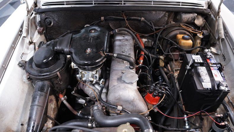 The engine compartment looks mostly stock. The 152 cubic inch straight-six with Weber carburetors could probably use a serious turn up. Mated to the engine is a 4-speed automatic transmission that connects to a factory rear end. The suspension is stock-style and seems to make the Mercedes still drive like a luxury car. Stock 14-inch wheels with beauty rings wrapped in 205/70R14 tires need some help. Power disc brakes go all the way around, and a stock-style exhaust with an aftermarket muffler lets out the Benz's exhaust fumes.