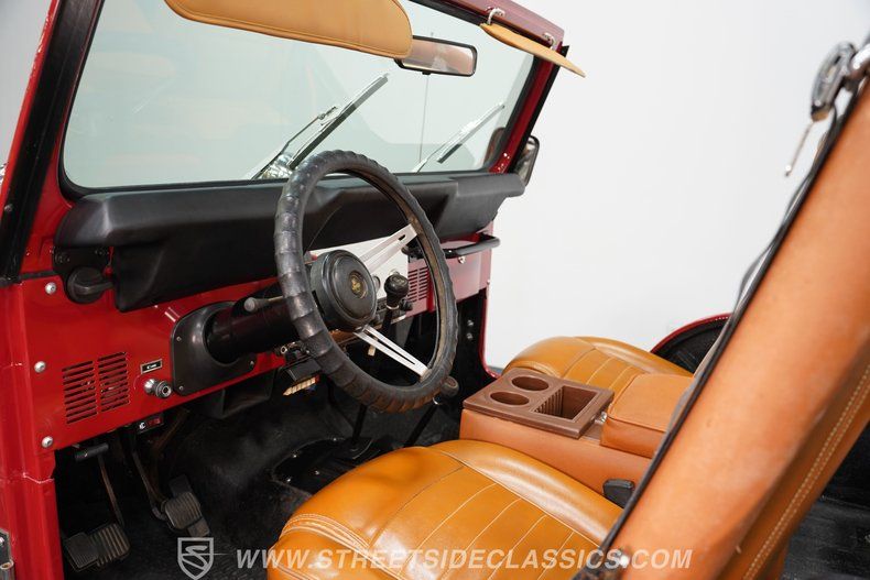 This 1982 Jeep CJ5 4X4 keeps its authentic feel thanks its lifted, factory-style suspension. Deep fifteen-inch white rims are covered by 32-inch all-terrain tires, with a fifth full-sized spare mounted to the tailgate. If you want to participate in the famous Jeep Wave and also enjoy driving one of the most respected trucks ever made, then don't wait another second; this CJ7 is the one you've been waiting for. Call today!