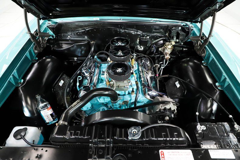EXTERIOR: Outstanding, much better than new! California built car, it lived on the west coast until 2024. The body was glass bead blasted to bare and is solid metal that's straight as an arrow. All the panels have wonderful alignment with nice consistent gaps that are right on the money. The doors open and close easily like a new car. Repainted in its beautiful and original Reef Turquoise without a vinyl top, it's a real show stopper. Staring at this car is literally like looking into a turquoise mirror. The bumpers have a glorious shine with fresh chrome and the remaining brightwork has been polished to perfection. All the glass is nice and clear. I love the subtlety of the rear tail lights and the stacked headlights. It's also equipped with optional reverse lights and a remote side mirror. She's rolling on a stylish set of Rally 1 Wheels wrapped in reproduction Gold line tires that were only available in 1965 and 1966. They greatly compliment the overall aesthetic and nostalgia.