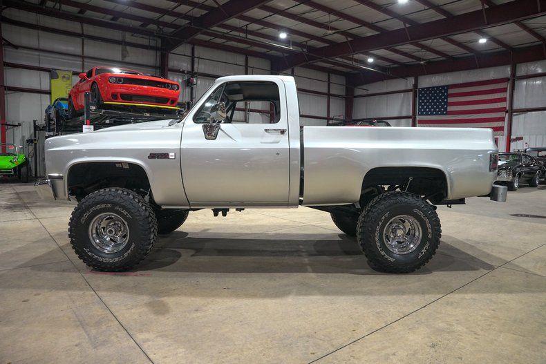 GR Auto Gallery is excited to present this 1987 GMC Sierra 1500 Classic finished in Silver Metallic over a gray cloth interior. As one of the final years of the squarebody generation, this Sierra carries the tough, timeless styling that has made these trucks so desirable. The lifted stance paired with 15 inch chrome wheels gives it a bold, aggressive look, while the spray in bed liner adds everyday usability and protection. This is a truck that looks right at home cruising town or tackling weekend projects.