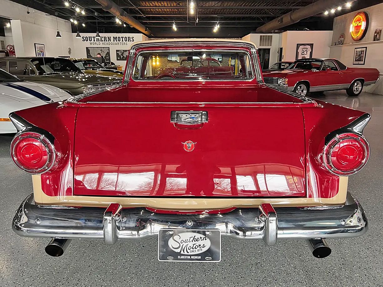 Documented Frame-Off Restoration, beautiful two tone PPG Renaissance red & cream paint, custom two tone interior, 302 ci crate engine, Edelbrock 4 bbl, Edelbrock Performer aluminum intake, ceramic headers, custom air cleaner & valve covers, Accel distributor, Borgeson power steering, power front disc brakes, Vintage air conditioning, aluminum radiator with shroud, C4 automatic transmission, bench seat, Flaming River tilt column with billet wheel, factory dash, Retrosounds radio, dual exhaust with chrome tips, factory rear axle, 215/70R15 BF Goodrich Silvertown radial redline tires, 15” American Racing Torque Thrust wheels, dual chrome mirrors, original owner’s manuals, Drive Anywhere!