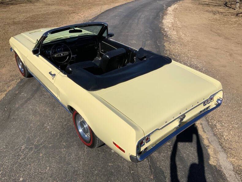 Welcome to Street Dreams as we celebrate our 27th year in the classic and muscle car business. Ford's Mustang absolutely owned the 1960's. After the stunning first model year sales of over 680K units the Mustang continued to sell well, earning its prominent place in American car culture. After all, every boomer I know has an old Mustang anecdote. And while Ford is still selling Mustangs some 61 years later, the clean, understated styling of the 1960's cars is more appealing than ever. This cheerful Meadowlark Yellow (W) 1968 Ford Mustang Convertible is a fine example of these beloved thoroughbreds and it illustrates beautifully the long hood/short deck proportions that spawned an entire market segment. Pop open the vented hood and you'll see the legendary 289 V8, a version of which won the 1965 FIA International Manufacturers Championship for Touring Cars. Additional features include power steering, power front disc brakes, power top with glass backlight, air conditioning, automatic transmission, correct paint and trim codes (W, 2A), 2.79 rear end, dual exhaust with H-pipe, a Sanyo AM/FM/CD audio system, and fresh, classic dual red stripe tires ( 205/70R14) wrapped around steel wheels with correct Deluxe wheel covers. The new cloth top looks better than new and fits neatly beneath its boot. With Spring right around the corner I can't imagine a better tanning machine. One more pretty pony from the Texas Hill Country's premier source for classic cars and the team that can make your dream a reality. Ray-Bans and sunscreen not included. Street Dreams (830-997-1950) is a full service dealership that can assist with worldwide delivery, insurance, and financing options.