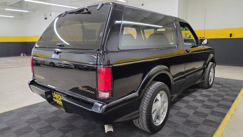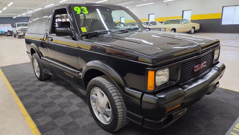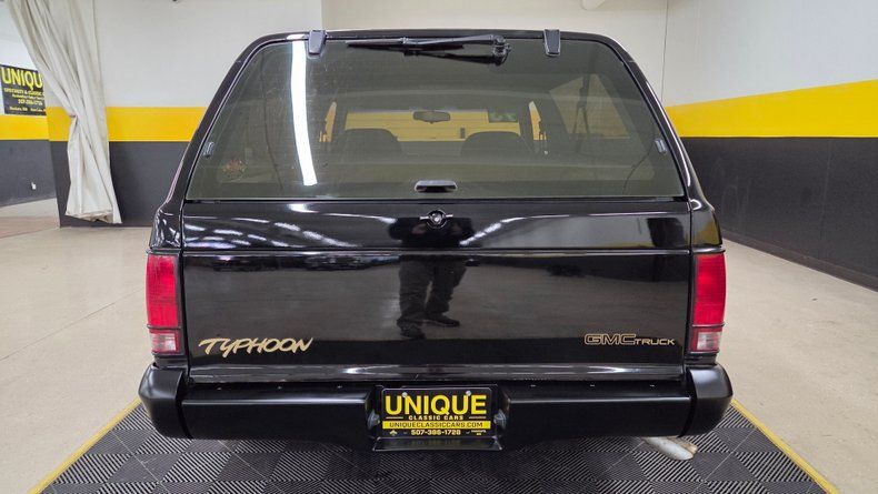 1993 GMC Typhoon, a classic super truck known for its turbocharged performance and all-wheel-drive capability. This particular Typhoon has ONLY 36,353 MILES and clean Carfax history. Under the hood lies the renowned TURBOCHARGED 4.3L engine, paired up with an automatic transmission with overdrive, and all wheel drive. Nicely equipped with power steering, power brakes, and factory air conditioning, though the (AC does not blow cold.) The exterior is finished in a striking gloss black paint with blacked-out grills, bumpers, and headlight bezels, complemented by a satin black lower cladding with gold Typhoon lettering. Riding on the correct factory wheels. The bodywork is remarkably free of significant dents, scratches, or dings. Inside, the cabin features dark charcoal (or ebony) leather bucket seats with multi-power adjustability and lumbar support, a center console, AM/FM CD player, and all modern amenities of the era such as power locks, windows, and mirrors. The headliner and second-row seating are in nice condition, and the overhead console and tilt steering column enhance comfort and convenience. The Typhoon has been well maintained, with recent replacements including a new alternator, battery, lower control arms, upper ball joints, shocks on all four corners, and new rear brakes. The rear glass struts are weakening and may need replacement. A keyed nut removal tool for the center caps is stored in the glove box. On the road, smooth yet strong acceleration. The distinctive turbo boost delivers strong torque while maintaining a relatively quiet factory exhaust sound. The all-wheel-drive system provides excellent traction, making it a capable and fun vehicle to drive. The heater and dashboard instrumentation, including the turbo boost gauge and tachometer, are fully operational and add to the driving experience.