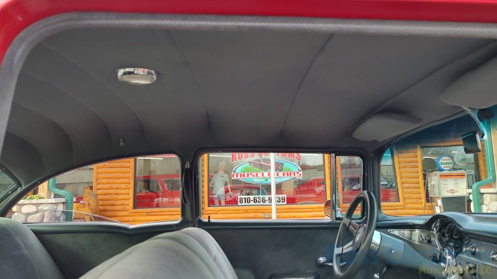 Custom 2 tone gray interior, dash and garnish moldings have been re-finished, has been completely rewired with up to date harness throughout, nicely updated with Dakota digital classic look instrumentation, direct fit AM/FM stereo with IPOD capability, front and rear speakers, nicely outfitted with Vintage AC Gen 5 system, also updated with Newport multi-speed wipers, Flaming River tilt steering column, Lokar steering wheel, at time of build had new headliner and visors, package shelf, custom front and rear door panels; as well as kick panels, original front and rear seats have also been custom upholstered, updated with front and rear seat belts, nicely outfitted with Lokar shifter, new carpet, deluxe floor mats, new sill plates, trunk has also been upholstered to match.