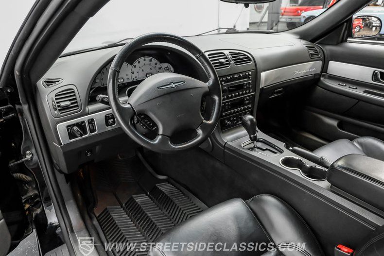 This generation Thunderbird, finished elegantly in Evening Black with a Midnight Black interior, features automatic A/C climate control and heated seats, allowing you to drive comfortably with the top down nearly all year round. This car was created to be a terrific cruiser loaded with power windows, power locks, keyless entry/alarm, dual front airbags, a premium AM/FM/6-CD changer stereo and cruise control. The leather seats feel comfy and have a well-respected style with the kind of use that goes with the low mileage. The power driver's seat gets you in the right position to really see nice details such as the steering wheel's classic turquoise streak in the Thunderbird logo that is coordinated with the needles on the gauges.