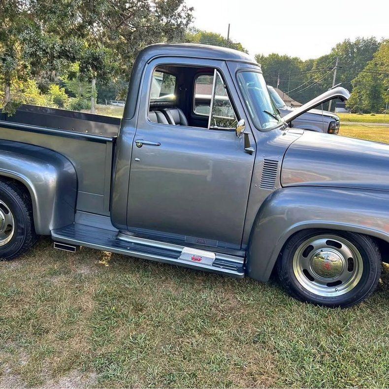 This 1953 Ford F100 is a sharp, upgraded classic pickup with 5,140 miles showing on the odometer. It is powered by a 351 Windsor V8 paired with a C4 3-speed automatic transmission. Finished in gray with a black interior, it presents as a clean, well-sorted build with a strong stance and a great overall look.
