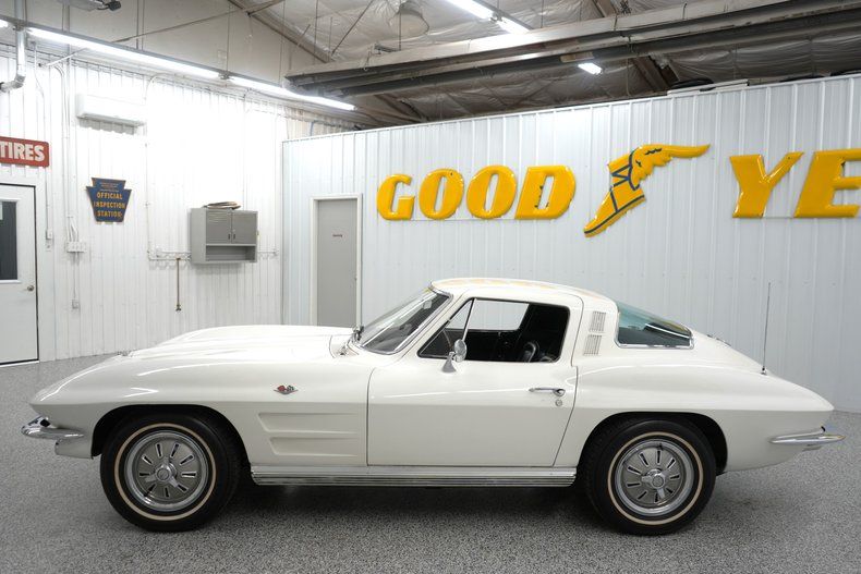 THIS VEHICLE IS LOCATED IN OUR PA. SHOWROOM !!!!! Numbers Matching 327cid Small Block Chevrolet Engine. Automatic Transmission. Power Steering. Power Brakes. Front Drum Brakes. Rear Drum Brakes. 15 Inch Wheels. Front Tires: 205/75/15. Rear Tires: 205/75/15. 3.36 Gear Ratio. Air Conditioning. Original Cast Intake. Carter 500cfm Carburetor. Original Points Distributor. Stock Coil. Mechanical Fuel Pump. Stock Ignition. Stock Radiator. Clutch Fan. Ermine White Exterior. Correct Color. Original Paint. 1 of 3,909 Ermine White 1964 Corvettes. Driver & Passenger Side Mirrors. Chrome Front & Rear Split Bumpers. Hide A Way Headlights. Billet Grill. One Piece Rear Window. Dual Air Vents Behind Doors. Black Leather Interior. Bucket Seats. Center Console. Black Carpeting. Black Door Panels. Seat Belts. Power Windows. Black Headliner.