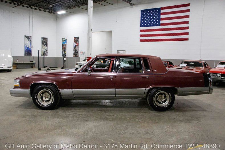 GR Auto Gallery is pleased to present this 1990 Cadillac Brougham for your consideration. Finished in a Burgundy exterior over a rich Red interior, this full-size luxury sedan offers timeless styling and classic American comfort. Powering this Brougham is a 5.7L V8 paired with an automatic transmission, delivering smooth, effortless performance and a true Cadillac driving experience. This strong running and driving example comes well-equipped with chrome front and rear bumpers, power windows, intermittent wipers, cruise control, a digital dash display, a Power Acoustik aftermarket stereo, spacious trunk, wiring for a subwoofer, vinyl roof, and much more. Drive this one out of our showroom or have us assist with shipping it to you anywhere in the United States! Don't hesitate to call us with any questions or for more information.