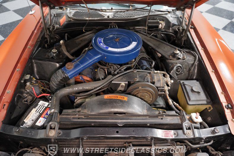 Under the hood, a strong-running 351 V8 delivers the power you expect from a classic American convertible. Paired with a smooth three-speed automatic transmission, this drivetrain remains largely original for a genuine driving experience. Factory power steering, power brakes, and air conditioning (converted to R-134A refrigerant) are all present, making every cruise effortless and enjoyable. The car rides on upgraded 17-inch Cobra-style wheels, giving it a confident stance and modern grip.