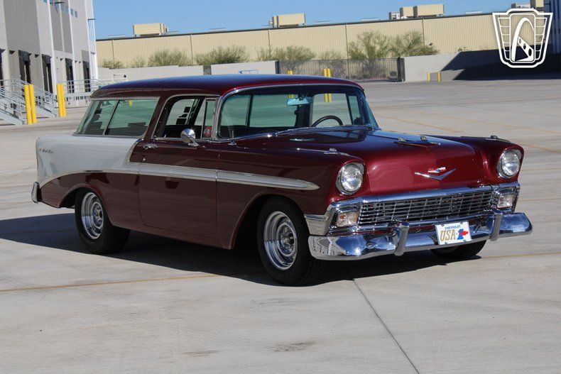 Gateway Classic Cars of Scottsdale is proud to digitally present the 1956 Chevrolet Bel Air Nomad, a true icon of mid-century American automotive design. Dressed in a striking red and white exterior, this Nomad captures the essence of 1950s style with its sleek lines, bold chrome accents, and unmistakable two-door wagon silhouette. Slide into the inviting red vinyl interior, where the craftsmanship of the era meets modern comfort, and prepare to embark on a journey that blends nostalgia with timeless elegance.