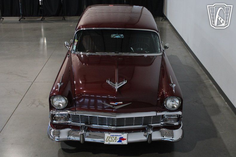 The 1956 Chevrolet Bel Air Nomad was part of the second generation of the Bel Air series, celebrated for its unique blend of practicality and style. As a two-door station wagon, the Nomad stood apart from its peers with its sporty design and upscale features, making it a favorite among car enthusiasts and families alike. With its AM/FM radio, CD player, and cassette tape player, this Nomad bridges the gap between classic and contemporary, offering a soundtrack for every drive, whether it's a golden oldie or a modern tune.