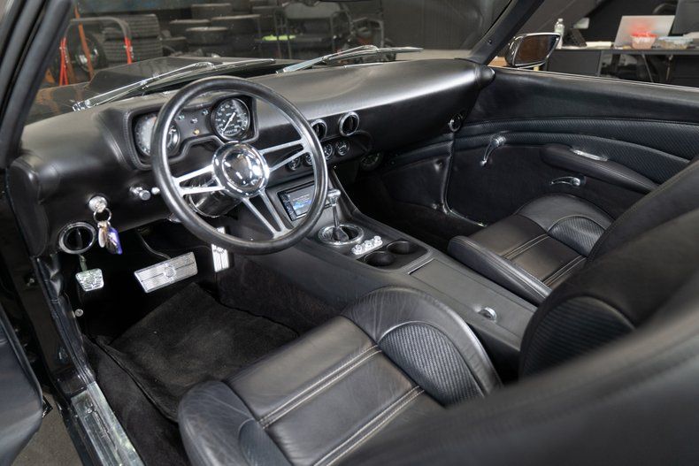 This RS/SS Convertible maintains its iconic 1969 presence while incorporating modern enhancements. The RS/SS front grille pairs with a custom Stingray hood to create an aggressive yet refined profile. LS3 badging subtly hints at the performance within. Carbon fiber mirrors and door handles add contemporary contrast, while LED billet taillights modernize the rear appearance. The electric-powered convertible top provides effortless open-air cruising. Riding on American Racing wheels and equipped with Wilwood 6-piston disc brakes, this Camaro balances classic muscle aesthetics with serious stopping power. A Ridetech fuel cap and convertible cover complete the detailed exterior package.
