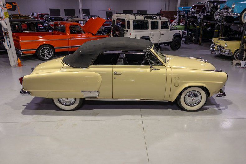 This 1951 Studebaker Commander Convertible is a beautifully restored "Bullet Nose" convertible with long-term enthusiast ownership. Riding the momentum of its strong 1950 performance, Studebaker entered 1951 facing a more challenging sales climate. Even so, the South Bend-based independent automaker delivered one of the most distinctive and forward-thinking lineups of the early 1950s. For the 1951 model year, Studebaker offered two primary series: the budget-friendly Champion and the upscale Commander. At the pinnacle of the range sat the Commander State Convertible- the most luxurious and highest-priced Studebaker available in 1951. The biggest advancement for the 1951 Commander models was found under the hood. Each Commander came standard with Studebaker's all-new 232.6 cubic inch overhead valve V8 engine, rated at 120 horsepower. Notably, the economical flathead six-cylinder was not even offered in the premium Commander line. The move to a modern OHV V8 reflected Studebaker's keen awareness of industry trends, as American manufacturers began transitioning away from pre-war flathead sixes and toward more powerful, efficient V8 powerplants that would define the decade. Beyond its mechanical upgrades, the 1951 Commander was strikingly futuristic in both styling and presentation. Its most unforgettable design feature was the dramatic "Bullet Nose" grille-an aviation-inspired front-end treatment that doubled as an engine air intake and echoed America's fascination with post-war aircraft design. Inside, the cockpit continued the theme with sweeping, aircraft-style instrumentation. Studebaker proudly advertised the "big, sweep-type aircraft dials" in its 1951 marketing, reinforcing the car's modern, jet-age persona. While Studebaker traditionally catered to value-conscious buyers, the premium Commander series allowed the company to broaden its appeal to customers seeking performance, style, and exclusivity. Production numbers underscore that exclusivity: only 3,773 Commander State Convertibles were built for 1951. Today, that limited production makes the 1951 Studebaker Commander "Bullet Nose" Convertible a highly desirable and rare collector car-equally at home on the show field or out on the open road in the hands of its next proud owner. This particular example comes to us from a wonderful collector who cared for the car for nearly 15 years, having purchased it from its prior owner of nearly 20 years. Powering this '51 Bullet Nose Studebaker is a 232.6 Cubic Inch Overhead Valve V8 topped with a single 2 barrel carburetor that together were said to have produced 120 horsepower when new. The OHV 232.6 V8 is mated to a 3 speed manual transmission with Overdrive that is shifted using the "Three-On-The-Tree" shifter for improved highway efficiency. Exhaust exits this Studebaker's 120HP powerplant via a stock set of exhaust manifolds ultimately exiting out the rear of the car via single exhaust pipe that produces a terrific sound. While Studebakers were notably sparse with features due to them being known as thrifty vehicles, this particular Commander Convertible comes outfitted with wonderful options. Around the exterior, this Commander is equipped with dressed-up trim options including "Stratoline" fender ornaments, front and rear bumperettes, and a "No-Mar" gasoline door guard. Riding on a set of wide whitewall tires paired with full chrome wheel covers emblazoned with the Studebaker Crest, this 1951 Studebaker has a truly regal look whether you're parked at the car show or cruising down the road! But the options on Bullet Nose is not limited only to the exterior; rather, the powertrain sports several wonderful upgrades including an optional Fram Oil Filter and the novel "Automatic Hill Holder" feature optioned on the braking system. The black cloth convertible top is in wonderful condition and features a glass rear window with chrome surrounds. The body of this '51 Bullet Nose has been refinished in beautiful Sahara Sand paint that completes the exterior look of this rare automobile. The interior of this 1951 Studebaker Commander "Bullet Nose" Convertible is gorgeous! The front and rear bench seats have been restored with Medium Gray upholstery that complement nicely with the overall look of this convertible. The matching door panels, Sahara Sand painted dash, black carpeting, and steering wheel are all in great shape and retain a nice stock appearance. This Studebaker comes equipped with a full array of instrumentation including a 100 MPH speedometer, temperature gauge, oil pressure gauge, amp gauge, and a gasoline gauge. The dash is finished off with various vehicle controls, a locking glovebox, and a Studebaker "Stratoline" Automatic Tuning AM radio with 6 Finger-Set Keyboard Station Selectors so that you can listen to all of your tunes while cruising down the road. Whether you're buying your very first classic car or you're adding to your existing Studebaker collection, this 1951 Studebaker Commander "Bullet Nose" Convertible would make an excellent choice. Give Ellingson's a call today at 763-428-7337!