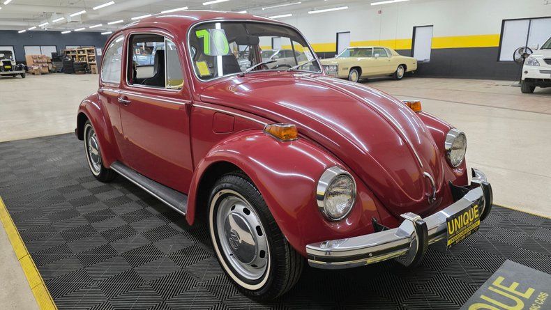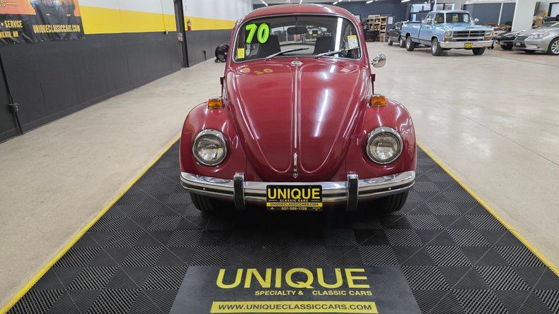 1970 Volkswagen Beetle. This Beetle has a documented history, with just over 40,000 original miles recorded. 1600cc engine paired with a rare "auto stick" transmission-a hybrid between a manual and automatic transmission. This easy to drive gearbox eliminates the need for a clutch pedal and allows the driver to shift between first and second gears manually, with an additional low gear primarily for steep inclines. The car was actively used until the mid to late 1980s, followed by a long storage period. The second owner, who acquired the car in 2018, performed maintenance such as replacing gas lines, carburetor components, brake lines, and the fuel tank. The Beetle features its original red paint with minor touch-ups, vinyl bucket seats, and an original interior. Good condition interior with black bucket seats, door panels and dash. Riding on VW wheels with center caps, and white wall radial tires. Featuring an electric rear glass defogger. Slight brake pull and pulsation are noted, and two tie rods are slightly loose. The fuel gauge and speedometer function correctly. Astonishingly nice original condition, and well cared for. The windshield washer, which functions via air pressure from the spare tire is even intact. This car was ordered without a radio. On the road, the Beetle's nimbleness, comfort, and the ease of driving offered by the auto stick transmission are enjoyable.