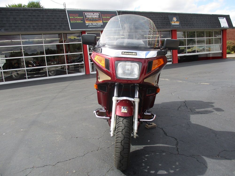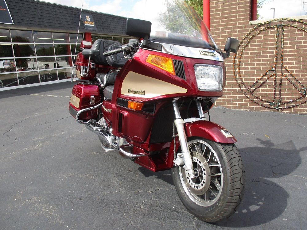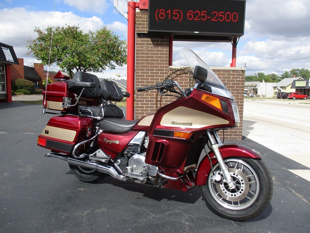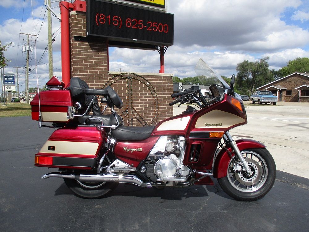 The Kawasaki Voyager debuted in 1986 as a fully dressed touring motorcycle, designed to rival Hondas Gold Wing with long-distance comfort, integrated luggage and advanced electronics. The 2001 Kawasaki Voyager XII (ZG1200) is a full-dress touring motorcycle powered by a 1,196cc liquid-cooled, inline-four engine with DOHC and four valves per cylinder. It uses a 5-speed transmission and shaft drive, has a large fairing, comfortable seating and weighs in with a wet weight of 799 lbs. This particular example was optioned in a gorgeous Vintage Red and Pearl Beige that still looks amazing. It has been nicely upgraded with a driver backrest that has a storage pouch in the rear, driver floor boards, a heel to toe shifter and it sounds amazing ripping through its true dual performance exhaust with dual tips on both sides. It was last serviced less than 1,000 miles ago at which time both tires were replaced. The previous owner was planning to change the brake pads but realized that the owner prior to him had just done it and they had too much life left to remove them. The 3 sets of new pads he was planning to install are included as well as the needed gaskets for the next service, the original toe shifter, a waterproof storage cover, the original color matched saddle bag and trunk liners with Voyager logos and the original owners manual for the bike and Clarion PK-9090V stereo system. The are few scratches here and there and there is some discoloration on the windshield but overall