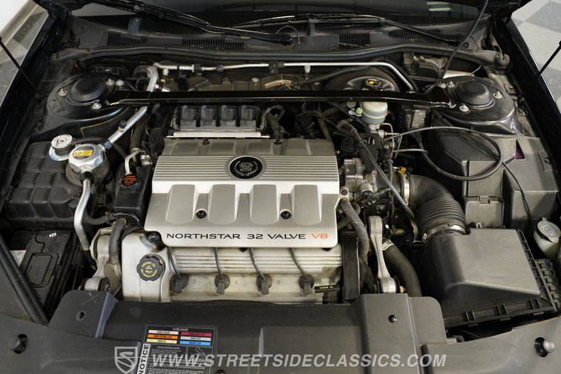 Under the hood, the engine bay presents as stock and tidy. Power comes from a 4.6-liter Northstar V8 paired with a 4-speed automatic transmission that routes power through a front transaxle. Suspension duties are handled by a factory-style FE3: Sport Suspension System for a smooth, controlled ride. At all four corners sit aluminum deluxe 16-inch wheels wrapped in 225/60R16 tires. Stopping power comes from front and rear power anti-lock disc brakes. A stock-style dual-to-single exhaust system keeps the ride smooth and quiet, just as Cadillac intended.