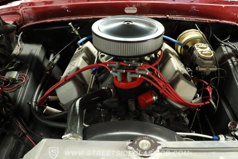Inside, the brown door cards are in good shape and contrast nicely with the King Ranch weathered saddle 70/30 bench seats, which also show well. Black carpet has been installed and pairs nicely with the black dash pad and Grant steering wheel. Burgundy paint surrounds the cabin, matching the exterior while giving the interior a cohesive look. A monster AutoMeter tachometer sits in front of the otherwise stock gauge cluster, with three auxiliary gauges mounted down to the right. On the floor is a B&M shifter, and the dash houses a Kenwood AM/FM/CD/Aux head unit with Bluetooth. Just like the exterior, the interior is simple but very well done.