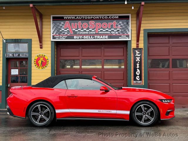 Anthony Almes724-388-4930 call/text1115 Philadelphia StreetIndiana, PA 15701Check out our FULL walk around YOUTUBE video here: https://youtu.be/X_90hXhyk24?si=E5tCsLCwON9pLiurOffered for sale is a Clean Carfax, 2024 Ford Mustang Premium Convertible with only 49k miles and a brand new set of tires!! This 2024 Mustang features a 2.3L 4-Cylinder Turbo Ecoboost that produces a factory rated, 315HP (15 more than the 4.6L V8!) and an Automatic Transmission that performs great and maintains excellent fuel mileage! Around the Race Red exterior youll find it to be in great condition, likewise the premium 5-spoke 18 Machined Aluminum Wheels really set this car off and have been fitted with new tires. The power convertible top functions great and gives this car a completely different look whether up or down. Throughout the Space Gray interior youll find the dash area, console and carpeting all showing very well and bringing the car together. In addition, this 2024 Ford Mustang Convertible with only 49k miles is equipped with options such as: Clean Carfax 2.3L 4-Cylinder EcoBoost Automatic Transmission Heated and Cooled Front Seats Heated Steering Wheel Factory Backup Camera Lane Assist/Park Assist 18 Wheels with New Tires Rear Spoiler Factory Remote Start Fresh Oil Change/PA Inspection And much more!!Call or text Anthony about this vehicle at 724-388-4930 for more information or to set up an appointment. I offer Facetime as a way to virtually inspect the cars before purchase. If you havent been on our website yet, please visit www.autosportco.com to view 25+ pictures of each vehicle as some websites only list a few photos.This vehicle is located at 1115 Philadelphia Street, Indiana, PA 15701. These vehicles are mostly stored within our indoor showroom. We accept trades, offer transportation services and can assist with financing options. WeBe Autos Specializes in Marketing and Advertising Muscle, Classic, Vintage and Specialty Cars. We offer Professional Photography, HD Movies, and Staging that Sells Cars. Let us showcase and sell your specialty car. Please visit our website for more details. Keep in Touch, Michael Runnalls Specialty Car Marketing & Media WeBe Autos Ltd. Long Island, NY 11780 Michael@WeBeAutos.com www.WeBeAutos.com (O)631-339-0399 (C)516-729-2003 Skype: webeautos (F)631-389-2605 - - Air Conditioning, Climate Control, Dual Zone Climate Control, Cruise Control, Power Steering, Power Windows, Power Mirrors, Leather Steering Wheel, Leather Shifter, Power Drivers Seat, Power Passenger Seat, Heated Seat, Clock, Tachometer, Digital Info Center, Tilt Steering Wheel, Telescoping Steering Wheel, Steering Wheel Radio Controls, Driver Airbag, Passenger Airbag, Side Airbags, Keyless Entry, Security System, ABS Brakes, Traction Control, Dynamic Stability, Rear Defogger, Intermittent Wipers, AM/FM, Child Safety Door Locks, Electronic Brake Assistance, Limited Slip Differential, Locking Differential, Electronic Parking Aid, Remote Ignition, Heated Steering Wheel, Adjustable Foot Pedals, Tire Pressure Monitor, Subwoofer, Front Power Lumbar Support, Leather Seat, Load Bearing Exterior Rack, Automatic Headlights, Daytime Running Lights, Full Size Spare Tire, Heated Exterior Mirror, Electrochromic Interior Rearview Mirror Air Conditioned Seats, Bluetooth, Carbon Fiber Trim, Carpeted Floor Mats, Center Arm Rest, Center Console, Cup Holders, Daytime Running Lights, Front AC Seats, Front Heated Seats, Heated Mirrors, Overhead Console, Parking Sensors, Rear Spoiler, Rear Spoiler, Reverse Camera, Roll Stability Control, Tire Pressure Monitor, Vanity Mirrors - Contact Michael Runnalls at 631-339-0399 or Michael@WeBeAutos.com for more information. -