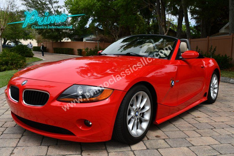 Stunning Example 2003 BMW Z4 Convertible :: 13,455 Actual Miles On title, Powered by L 6 Cyl Engine, 5 Speed Manual Transmission, Bright Euro Red Exterior, Tan Leather Interior, Black Power Convertible Top, Air Conditioning, Power Steering, Power Brakes, Power Windows, Power Locks, Cruise Control, Dual Power Seats, Dual Heated Seats, AM/FM/CD Player Stereo, Luggage Rack, Alloy Wheels, Car Cover, Beautiful Roadster Ready to Enjoy! For More Information Feel free to call us anytime! Financing available! Call Monica 863-333-8286, Dan 863-226-8590, Jacob 863-899-1565 or email sales1@primoclassicsint.com