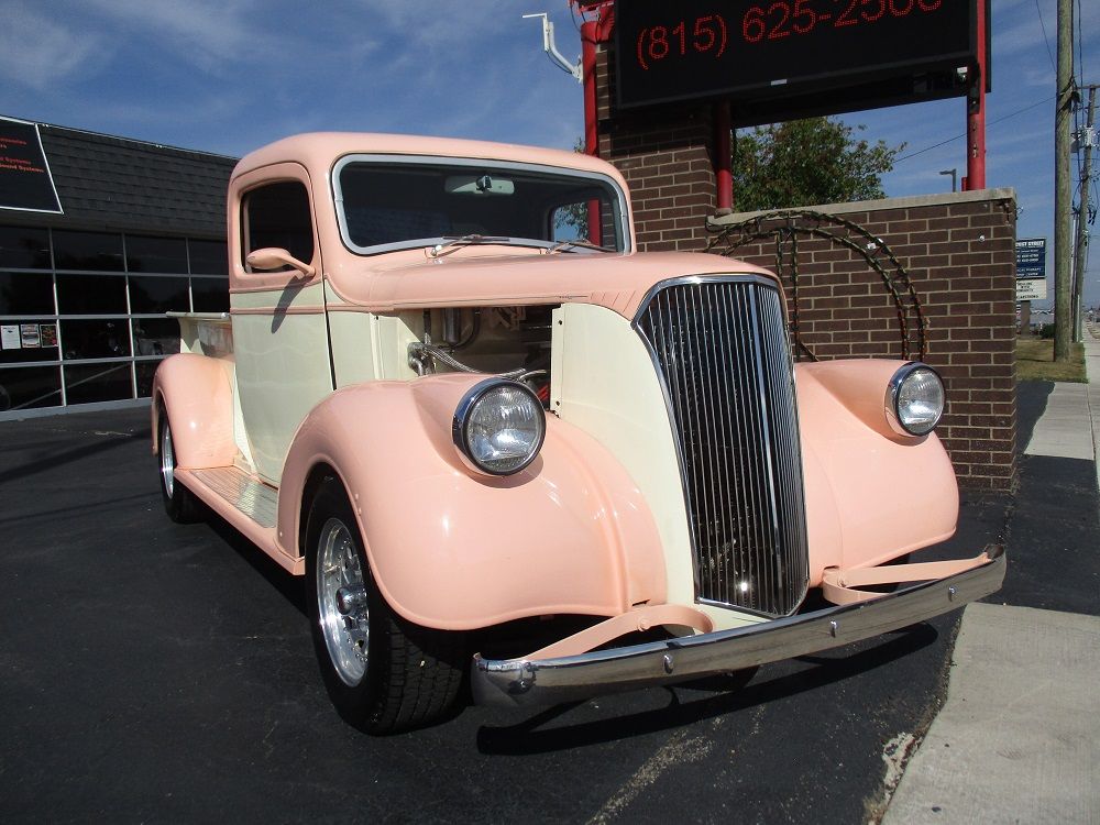 The 1937 Chevrolet truck introduced a more stylish, Art Deco-influenced design and an all-steel cab, making it a pivotal vehicle in the move toward more comfortable and modern pickups. This particular example was converted into a high-end street rod with state-of-the-art amenities. The heart of this sweet truck is a 500ci V8 Cadillac engine and T400 tranny from a 1976 El Dorado. The engine was bored out to 505ci and both it and the tranny were completely rebuilt before being stuffed in this sweet truck. It has a custom 2” X 4” boxed tube chassis fit with a 4-wheel disc brakes, front and rear independent suspension and a rear end all from a 1977 Jaguar. The cab, floor pan and doors were all extended 6 ½” giving you a little extra stretch. You will also appreciate the sunroof, the suicide doors with shaved door handles, electronic and manual door poppers, custom fenders, custom running boards and custom fender mounted headlight buckets, a rolled rear pan as well as the blinkers frenched into the custom mirrors the frenched in 3rd brake light and frenched in gas cap. The engine is fit with top-of-the-line performance goodies that are all chrome or polished. It is fed via an Edelbrock performance carb with electric choke and a Performer intake. Spark is handled by a Mallory Hi-Fire ignition, it has a set of 2 ½” Sanderson ceramic coated headers and it sounds just plain nasty ripping through its Thrush performance exhaust. It has full custom leather interior with Auto Meter gauges, a custom center console that houses a Kenwood BT stereo and speakers as well a variety of controls including the Vintage Air HVAC controls. You will also appreciate IDIDIT chrome tilt steering column with power steering and push-to-start ignition. Both the hood and custom tonneau cover have power actuators that you can raise or lower from inside the cab. The exterior is a two-tone Tangerine and Vanilla Shake with custom pinstriping, and tinted windows. The portrait of Holly on the tail gate as well as the names on the doors are on top of the clear coat so that they can be removed without painting. The appearance is all pulled together by a sweet set of American Racing polished rims wrapped in a set of BF Goodrich Radial TA’s. The bad news is that both of the doors were over extended enabling the back side of the doors to slightly crease the cab corners. There is not paint damage on the passenger sider but there is some minor paint damage on the driver side. We were planning to have this all fixed and list the truck for $49,900. Instead, we have decided to reduce the price by $15,000.00 and sell it as-is. Almost $100K has been invested in this truck and it has been driven just over 1,000 miles representing a chance for someone to get one heck of a deal!