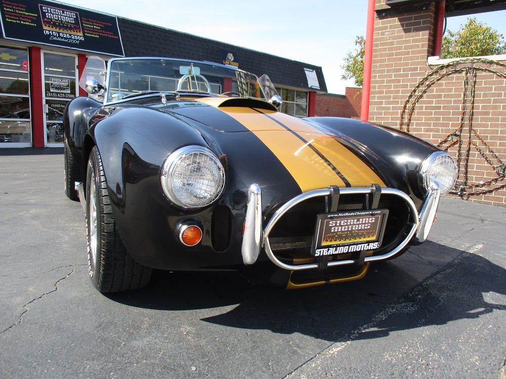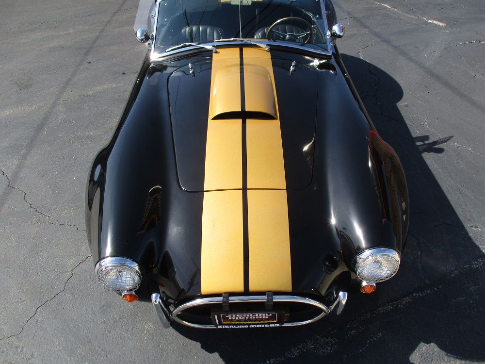 Born from Carroll Shelby’s vision in the 1960s, the Shelby Cobra combined a lightweight British AC roadster with big American V8 power. The result was one of the most legendary and fearsome sports cars ever built. An icon of speed, sound and style. With originals now fetching well into seven figures, replicas like this have become an affordable way to own the legend. This particular kit was supplied by Finish Line who supplied all of the parts for the build. It is powered by a Ford 302ci V8 that is fed via a Quick Fuel 600cfm carb and an Edelbrock Performer intake. It is sparked with an electronic ignition and it sounds just plain nasty ripping through its performance headers and stainless-steel side exhausts. It’s 300 + hp are put to the 10 Bolt posi 8.5” rear end with a Borg Warner T5 5-speed manual transmission. It is finished in black with gold stripes, has a gorgeous set of 15” spinner rims with BF Goodrich Radial T/A tires and it comes with a removable hardtop. The cockpit sports the iconic Shelby Cobra wood steering wheel as well as black leather seats and shoulder harnesses. You will also appreciate the front and rear bumpers, driver roll bar, functional wipers, horn and full street-legal running gear. It currently has 10,502 miles, everything works as it should and it turns heads everywhere it goes. We have priced it to move as quick as it goes so if you like what you see we encourage you to contact us before it is too late!