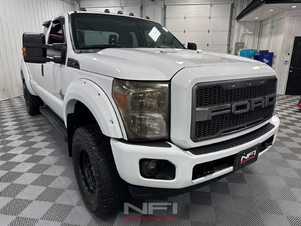 Finished in Oxford White over a steel cloth interior, this truck has been updated in ways that suit real use. It features a tri-fold hard tonneau cover, Line-X bedliner, B&W gooseneck hitch mount, aftermarket touchscreen Bluetooth radio, fender flares, an off-road rear bumper, flashing amber LED lights, and 17-inch wheels wrapped in 35-inch Cooper Discoverer tires. It has also been tuned and deleted with a 5-inch stainless steel exhaust. The lower portion of the truck has been sprayed with Line-X for paint protection, and the seller states that was done while the truck was rust-free rather than to hide prior rust issues. Altogether, this F-350 presents as a straightforward heavy-duty diesel with a strong factory equipment list and a useful set of aftermarket upgrades for towing, bed use, and general truck duty.