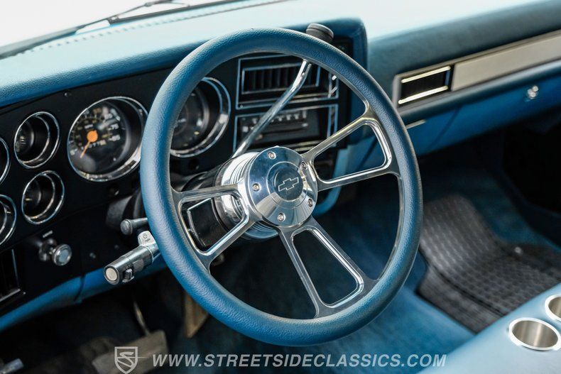Sliding behind the wheel of this 1984 Chevrolet C10 Scottsdale is about more than getting from point A to point B-it's about enjoying a classic pickup that delivers real presence and capability. Finished in a sharp two-tone Light Blue and Dark Gray repaint, this C10 features a painted bed, bedside rails, chrome bumpers, and a sliding rear window that adds both style and function. Its lowered stance, paired with factory steel wheels wrapped in 275/60R15 BFGoodrich radials, gives it a confident, street ready look that turns heads at the car show and commands attention on the road. This is a truck built to be driven, enjoyed, and remembered.