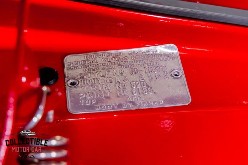 This example is listed as a Chevrolet 210 with Bel Air badging, giving it the clean side profile and iconic mid-'50s Chevrolet presence that buyers are always drawn to. The chrome and brightwork stand out nicely against the red paint, and the car has clearly benefitted from significant restoration and detailing throughout the build.